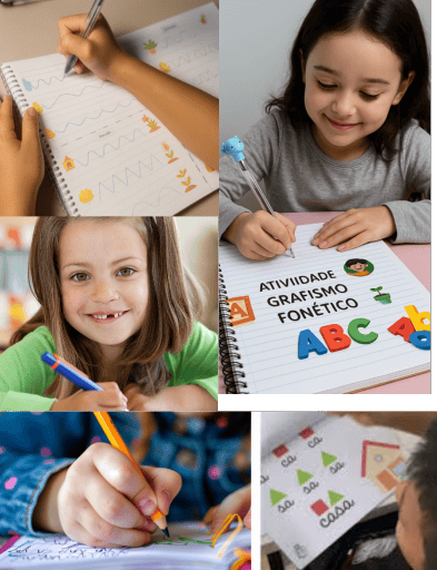 Nossas atividades de Grafismo Fonético são projetadas para crianças de diferentes faixas etárias, abrangendo desde primeira infância até o ensino fundamental.