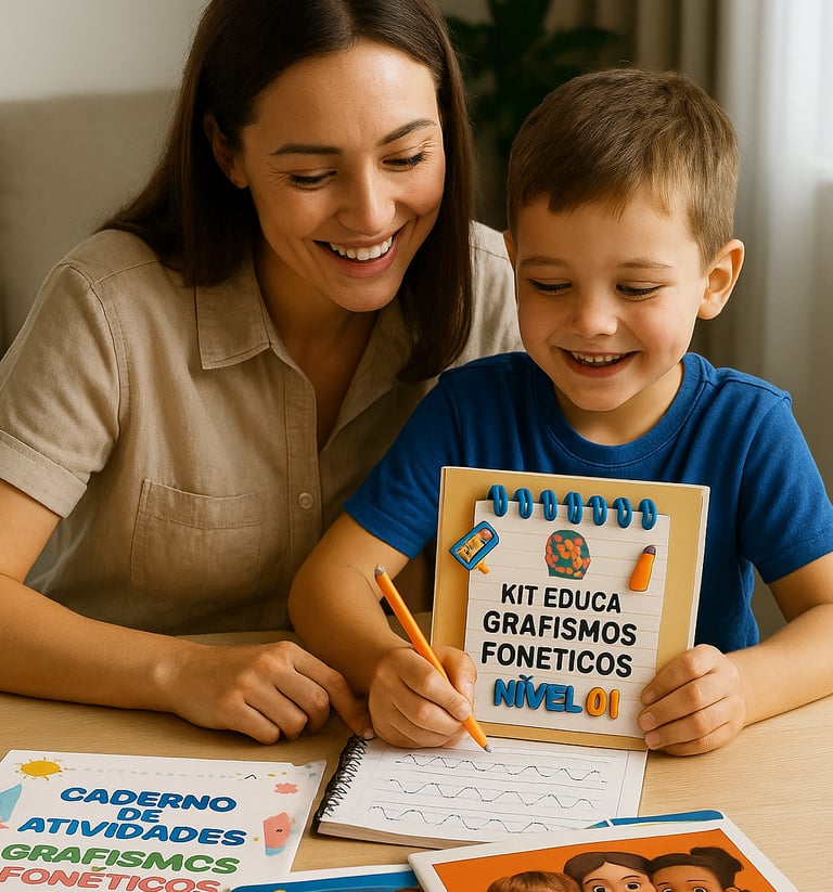 Com o Kit Grafismo Fonético, a criança desenvolve o cérebro para aprender a ler com leveza, no tempo dele- e com resultados visíveis em poucos dias.
